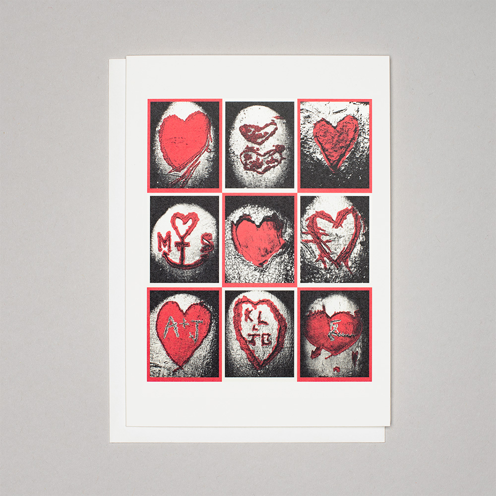 Each LOVEHEART is based on a real photo of a real love declaration carved onto a tree by a loving couple. Some are so old they have almost turned into abstract art.